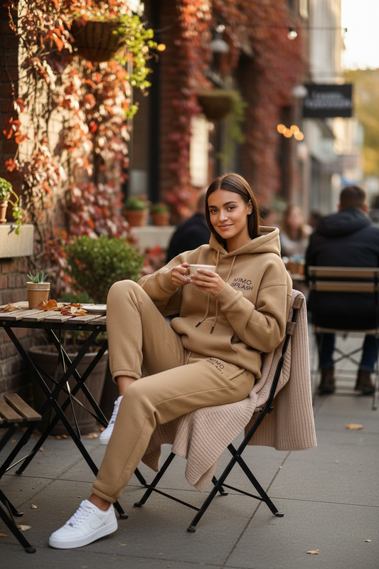 MIMOSPLASH Women's Beige Tracksuit Set - Premium Hoodie & Joggers