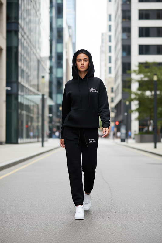MIMOSPLASH Women's Black Hoodie & Jogger Tracksuit Set - Premium Streetwear
